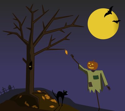 Pirate ghost on haunted island, spooky dead filibuster captain spirit with hook hand and wooden leg prosthesis on night tropical beach with ship, chest and treasure map. Cartoon vector illustration