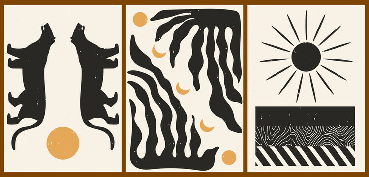 Creative minimalist hand draw Abstract art background. Modern aesthetic illustrations. Bohemian style Collection of contemporary artistic Design for wall decoration, postcard, poster, brochure,
