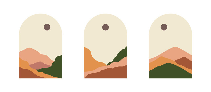 Abstract modern art with geometric balance shapes. Abstract arch, moon, earth print