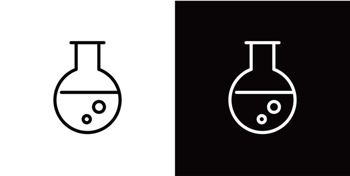 Colorful Flask Logos. Set Logo of Flasks: Round-bottom boiling flask. Logo set in vector style, emblematic variations. line, bold thick line, solid black