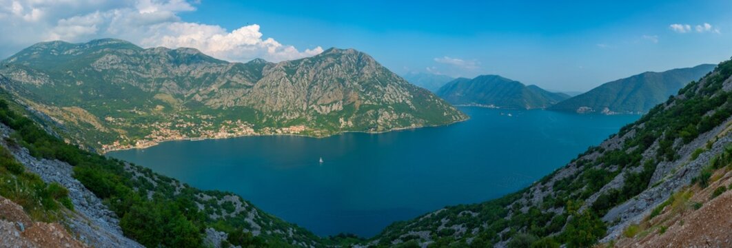 View to blue Boka Kotorska Bay from above.