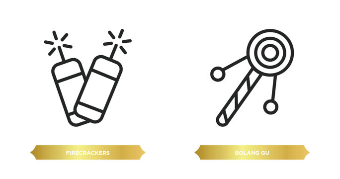 two editable outline icons from asian concept. thin line icons such as firecrackers, bolang gu vector.