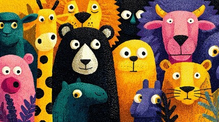 Fun background featuring animals in humorous costumes, bold colors, and lively patterns, designed for playful product packaging and creative advertisement concepts.