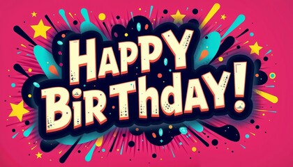 Colorful Pop Art Happy Birthday Illustration with Starburst Design