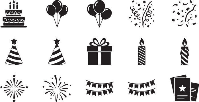 20.A modern birthday card design with a colorful mix of party-themed graphics, including a cupcake, balloons, and confetti, layered around a bold typographic greeting on a soft, festive background.