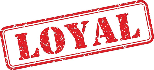 A prominent red rubber stamp displaying the word loyal in bold uppercase letters isolated on a stark white background
