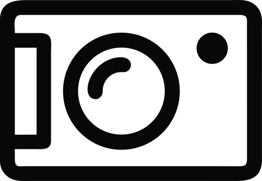 Doodle camera icon, hand-drawn solid black on white, large lens