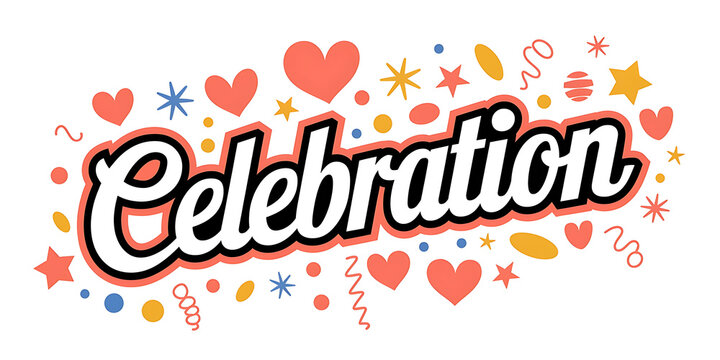 A celebration cutout png design asset with the text "Celebration" on a white background