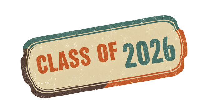 Graduation Class of 2026 Vintage Style Badge with Retro Colors and Distressed Texture