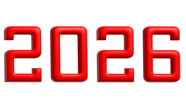 The digital display shows the year 2026 in bold black numerals against a stark white background.