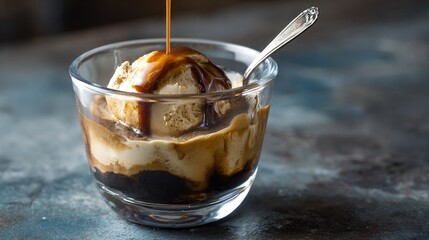 Artistic espresso and hazelnut gelato, an image of artistic espresso and hazelnut gelato, with bold coffee flavors and nutty textures, against a clean white background