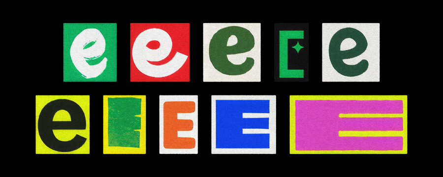 A textured black letter e on a bright yellow background, designed in bold typography. Eon. Illustration