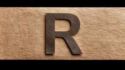 Closeup of printed bold letter R on textured background, showcasing rich brown color and tactile surface that adds depth and interest to design