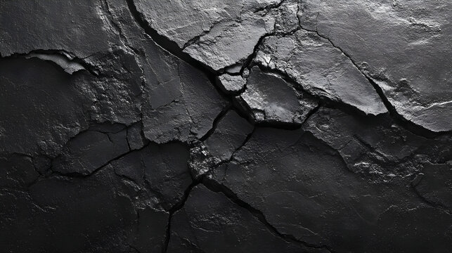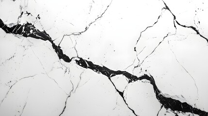 A striking, high-contrast image featuring bold white cracks and veins against a deep, dark, almost obsidian-like background, reminiscent of natural black marble or a shattered surface.