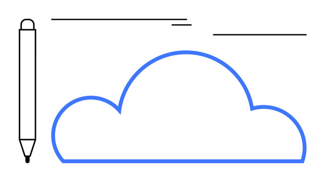 Cloud shape in blue outline paired with pen and bold lines, representing cloud technology, creativity, innovation, and digital tools. Ideal for tech, learning, design, productivity minimalism cloud