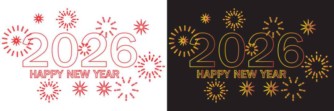 Happy 2026 New Year decorative vector icons A set of 2026 designs featuring bold numerals, festive ornaments, and contrasting light–dark color themes for celebration graphicsEPS10/AI.