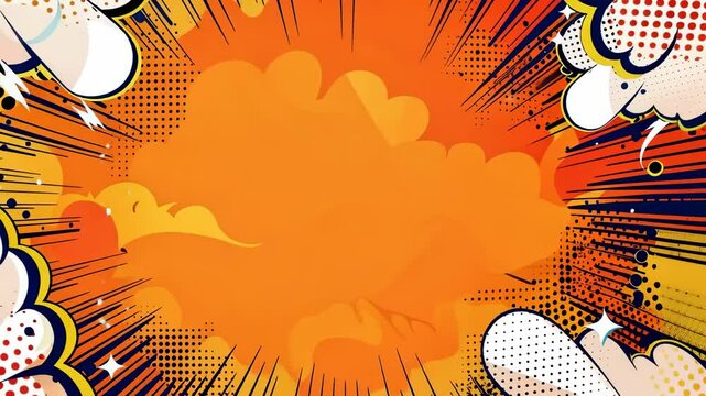 Dynamic video still of an abstract sunburst design, captured from a frontal angle, featuring bold lines radiating from a central orange circle.