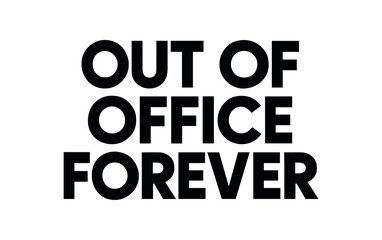 Playful bold typography with text OF OFFICE FOREVER geometric font isolated on white background minimal vector lettering work humor quote