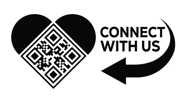 Bold monochrome vector design: Heart-shaped QR code beside smartphone, "SCAN ME!" text, and refresh arrow loop. Ideal for apps, events, NFTs, loyalty programs. Clean, modern, scalable for digital.