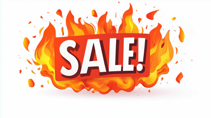 Eye-catching sale tag with bold letters surrounded by tropical leaves and vibrant contrasts. Sale promotion displayed prominently on red label against white background,