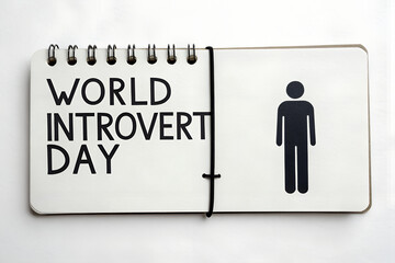 World Introvert Day notebook with bold text and minimalist figure icon evoking solitude, personal reflection, and quiet identity generative ai