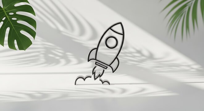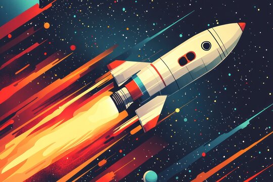 Stylized Rocket Launch   Geometric rocket with bold lines and colors taking off into a minimalist space.