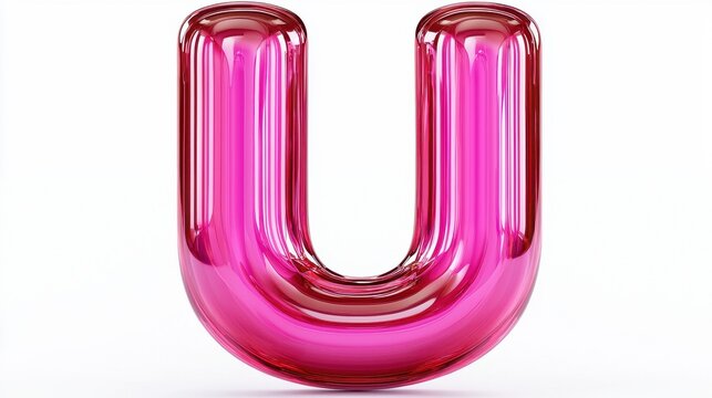 Vibrant Pink Glossy Letter U on White Background for Creative Use