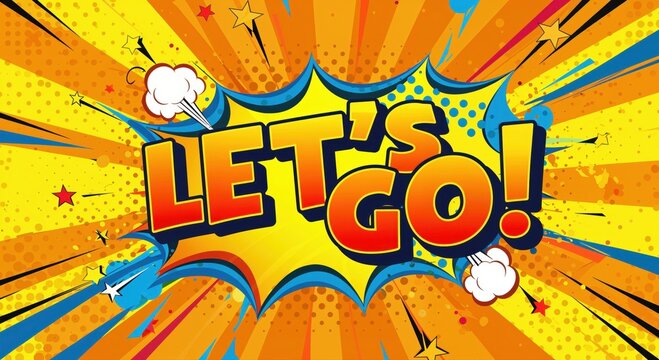 Let's Go! Graphic Illustration: A dynamic illustration bursts with energy, featuring bold text LET'S GO! with eye-catching colors and comic-style effects. perfect for conveying enthusiasm and action.