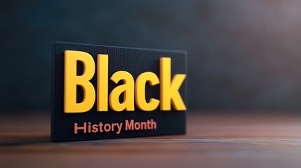 Black history month celebration sign with bold yellow text on wooden surface