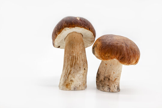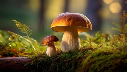Mushrooms in Forest Boletus Edulis. Edible Fungus on Ground with Moss.