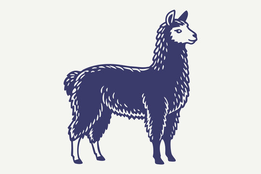 Stylized Navy Blue Llama Illustration on Light Background, Animal Art
