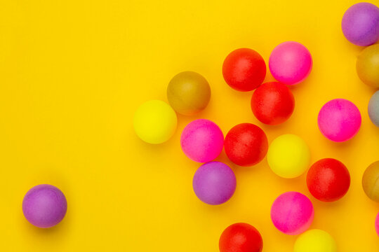 Abstract colored balls background. Multi-colored taw toy scattered on bright paper. Base for design nice backdrop, wallpaper, poster. Noisy surface texture
