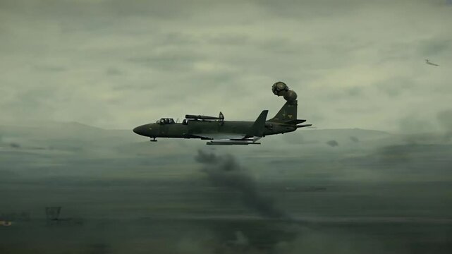 dropping Airplane bombs War World II 1940s aeroplane black-and-white bombing bomb cinematography danger day definition destruction falling flying hd high military no people outdoors retro sky us vint