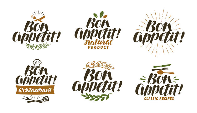 Bon appetit, lettering. Food label set. Vector illustration