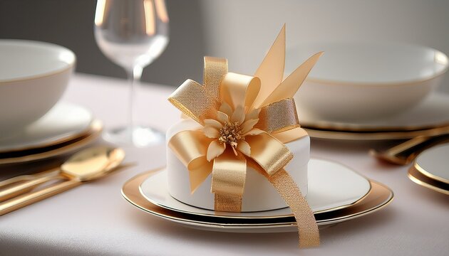 Stylish Ivory Bonbonniere With Gold Flower And Ribbon Great For Celebrations And Favors
