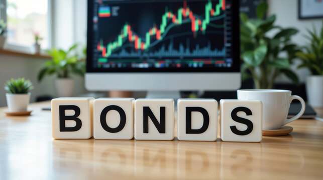 Businessman clicks a bonds virtual screen. Bond Finance Banking Technology concept. Trade Market Network