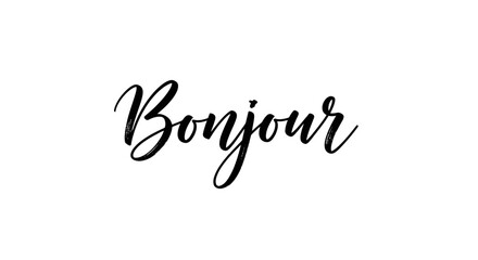 Bonjour handwritten vector inscription. French phrase Bonjour!