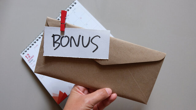 concept of bonus, communication by pulling paper of bonus from the envelope.
