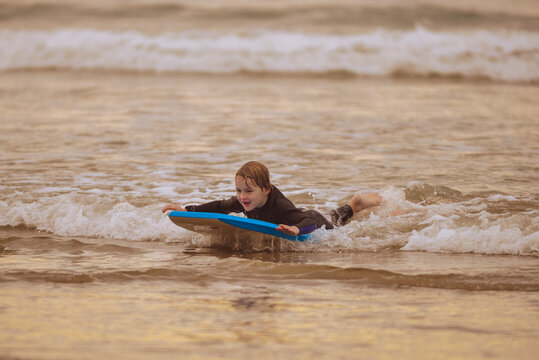 Boogie board abandoned on a sand at Kaunaoa beachr