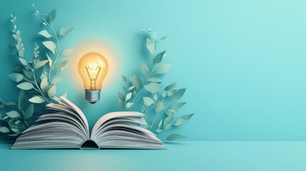 Day of Knowledge. A book with a light bulb on top as a symbol of an idea or invention.