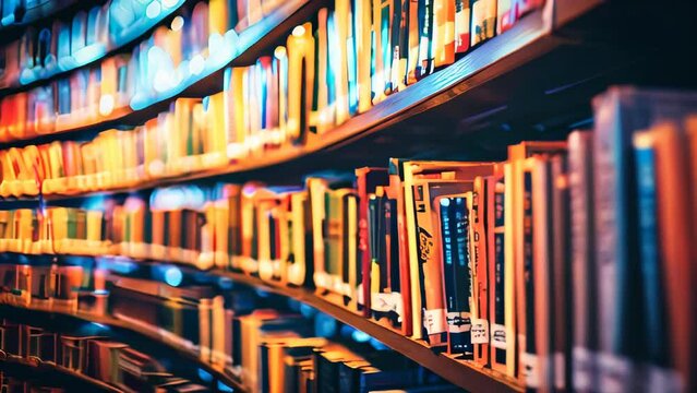 Stack of Books on the wall with long bookshelves on grey background vector illustration