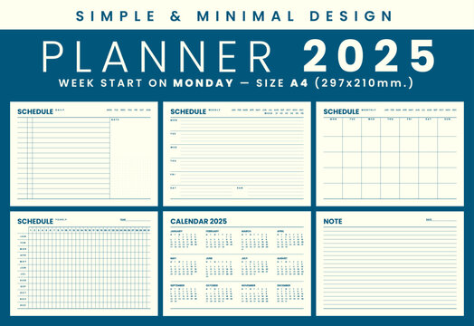 Cute vector weekly planner A4, page for notebook, diary, organiser, book.