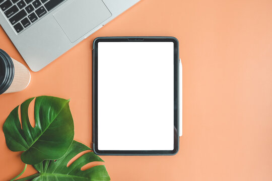 Tablet with isolated screen with place for your text, business concept