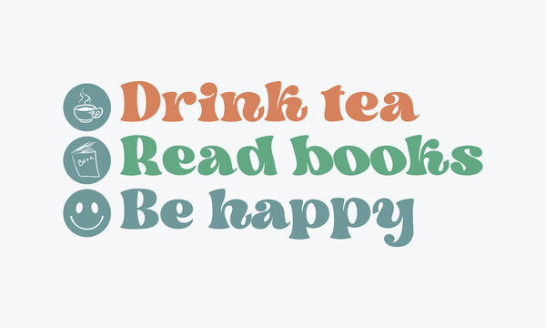 Drink tea Read books Be happy quote retro colorful typographic art on a white background