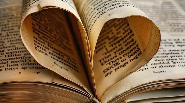 Our stock image features book pages curved into a heart shape, a romantic symbol perfect for bookish designs and sentimental gestures