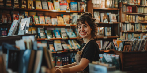 Smiling bookstore employee