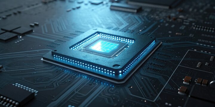 Artificial intelligence, AI chip, data processing, machine learning, server integration, cloud computing, digital network, coding laptops, futuristic technology, innovation
