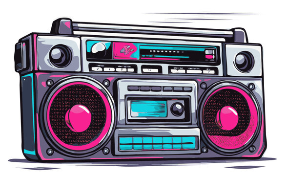 Boombox vector illustration. 80s technology. 90s music player. Retro style 90s boombox illustration.