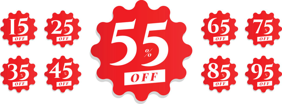 Eye Catching Red Discount Stickers, Perfect for Flat Sale tags in the Shopping Market for boost sales. Best in Print, editable vector file