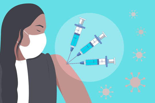 Illustrator vector of Vaccine bottle, syringe injection and calendar. Third booster shots vaccine after primer dose. Booster injection to increase immunity or COVID-19 vaccine booster dose concept.